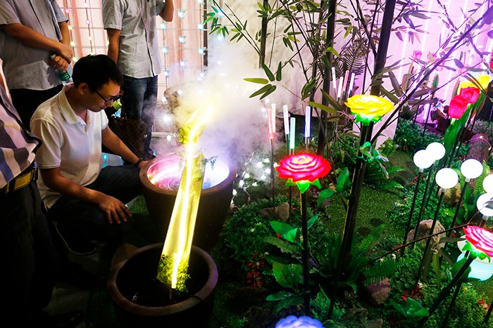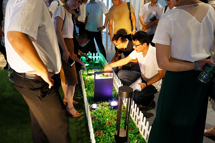 在30日上午新產品發布環節,參會人員一行前往杭州星河燈具市場,先后參觀了勇電及法拉沃展廳。
