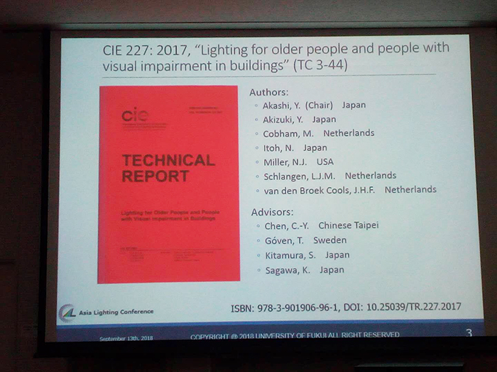 日本福井大學教授明石行生發表了關于“老年人照明需求”的主題演講。