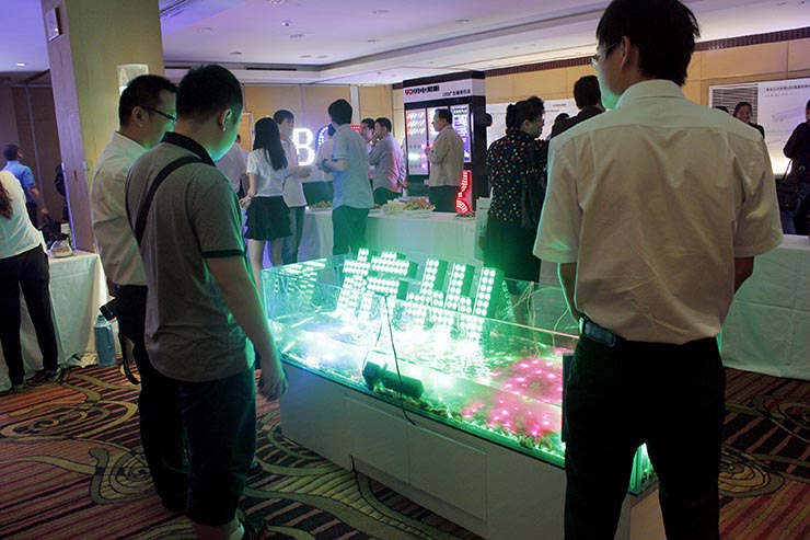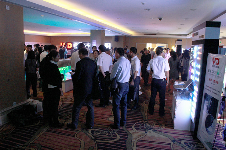 在會場的外圍場館,勇電照明有限公司將二次封裝產(chǎn)品做了一一展示,由二次封裝LED點光源組成的巨大顯示屏可隨時播放會議的主題、動畫等,浸入水中的LED光源更加吸引設(shè)計師們的眼光,同時展出的還有絢麗多彩的LED球泡燈、用于體現(xiàn)輪廓的線條燈、投光燈等等,新產(chǎn)品橋梁專用燈則讓大家連連驚嘆,一體化的結(jié)構(gòu)模式能夠同時實現(xiàn)兩種不同的照明效果,以實現(xiàn)不同的表現(xiàn)需求。勇電二次封裝LED產(chǎn)品讓設(shè)計師朋友將他們的藝術(shù)創(chuàng)意得到充分地實現(xiàn),同時,產(chǎn)品的開發(fā)應(yīng)用也得到了設(shè)計師朋友們的高度贊揚。