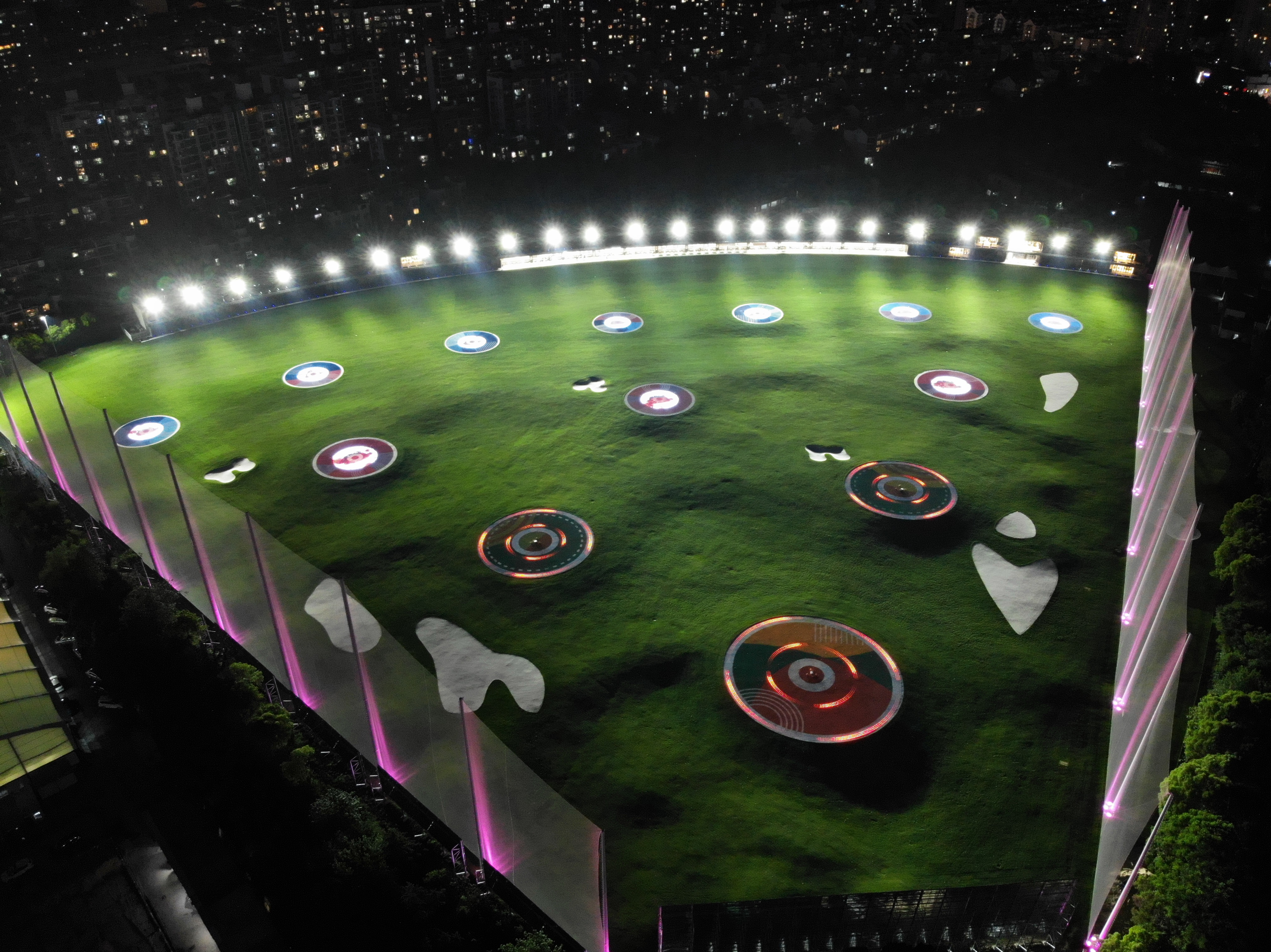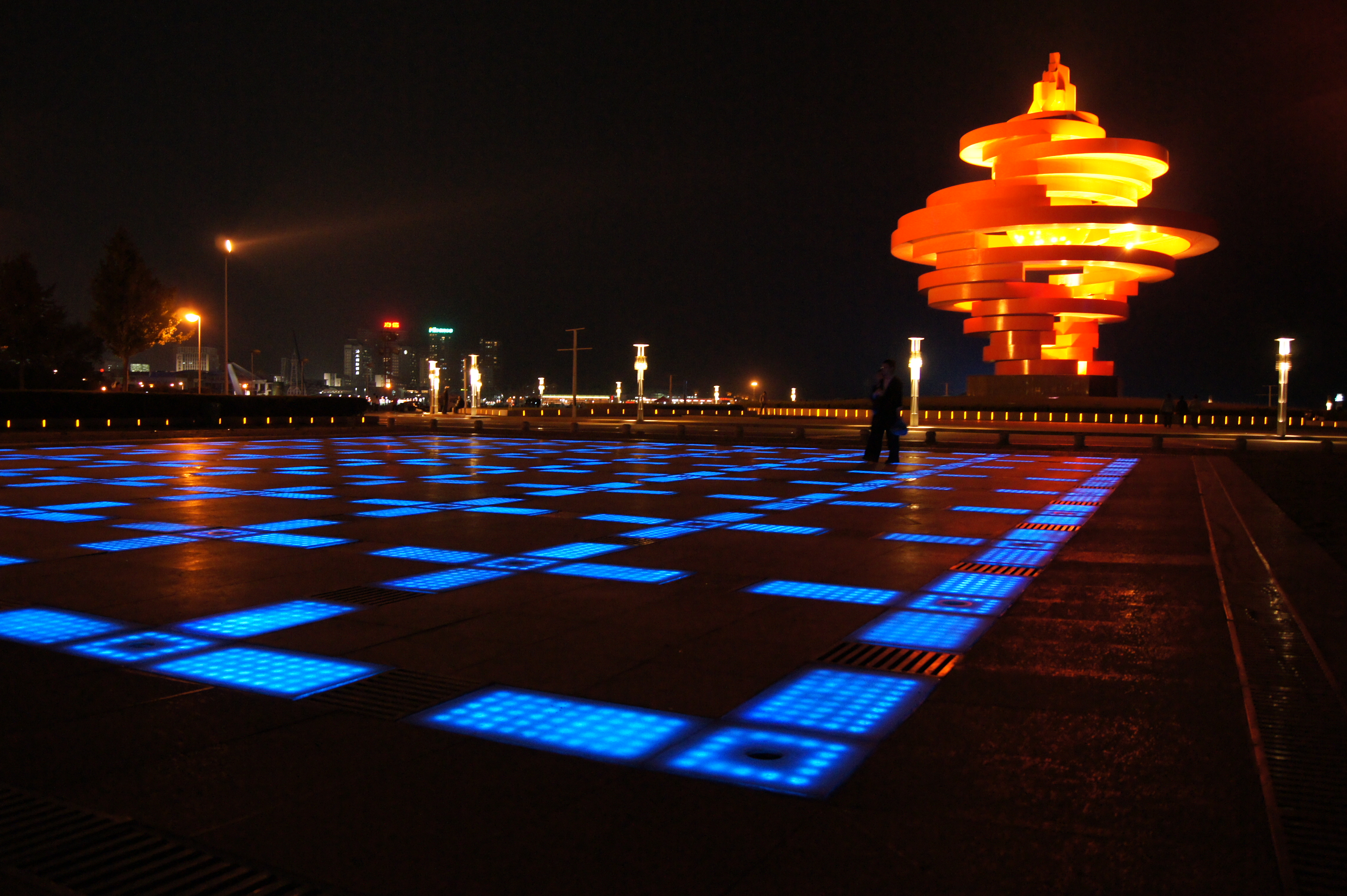 通過運行于廣場地面,采用RGB可控制地埋燈,有規則的安裝形式,安裝裝線狀或點成面的形式,從而通過程序控制形成動態效果或者圖案,進而起來裝飾以及引流的裝燈形式